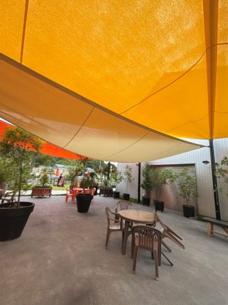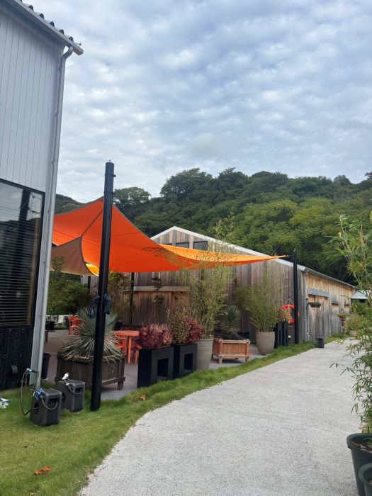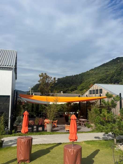 日本のウユニ塩湖とも呼ばれる夕日の絶景スポット・香川県三豊市の父母ヶ浜が眼前に広がる素晴らしいロケーションにある「海辺の珈琲研究所 豆豆豆」にて、ファーリングシェードを採用いただきました。
